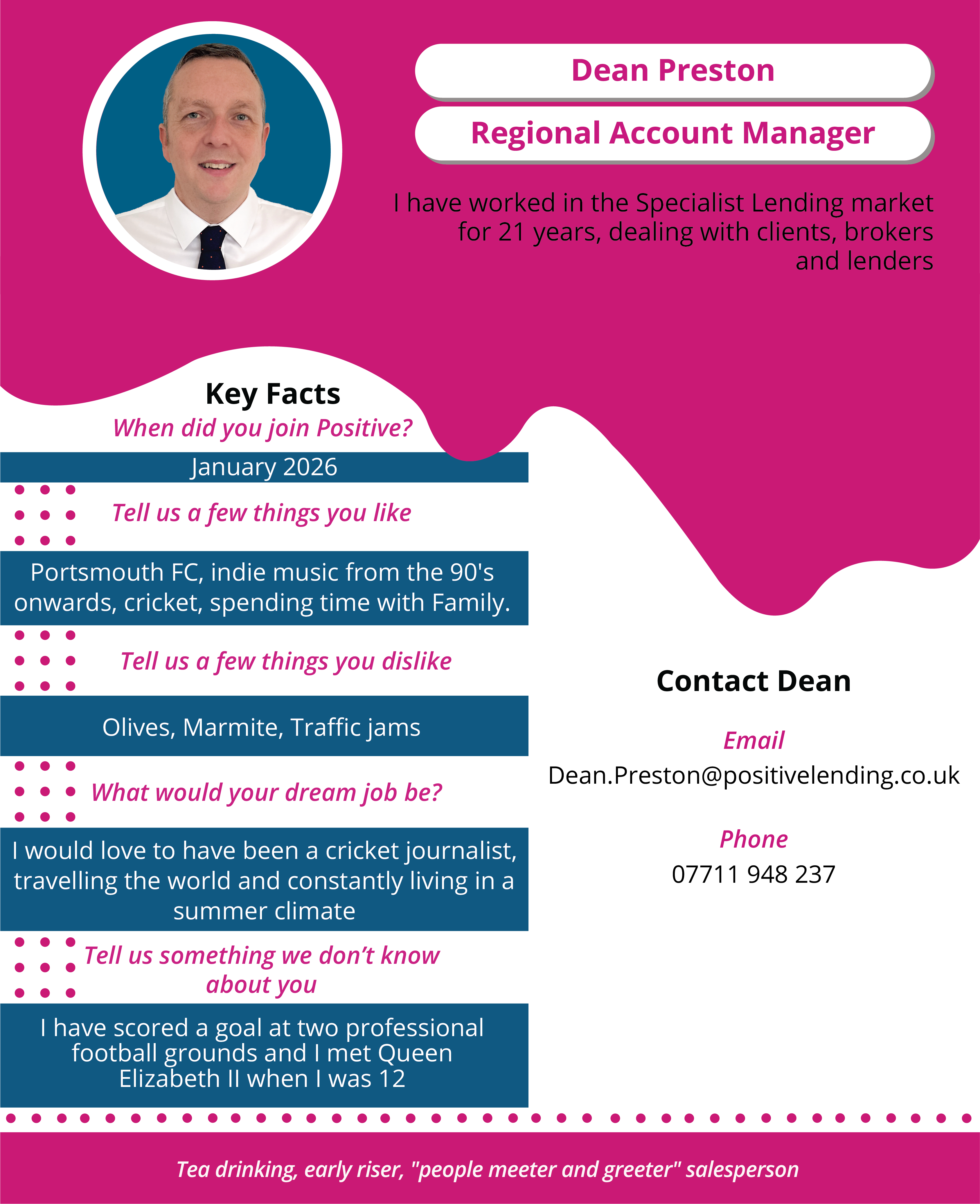 Working at Positive Lending is hard work but rewarding. We employ people that care about what being at Positive is all about, promote the brand in a conscientious way and exceed expectations. They also need the ability to laugh when things get tough. Our team do just that. With over 150 years experience in specialist lending we know it better than most. We are one big, and very happy family.